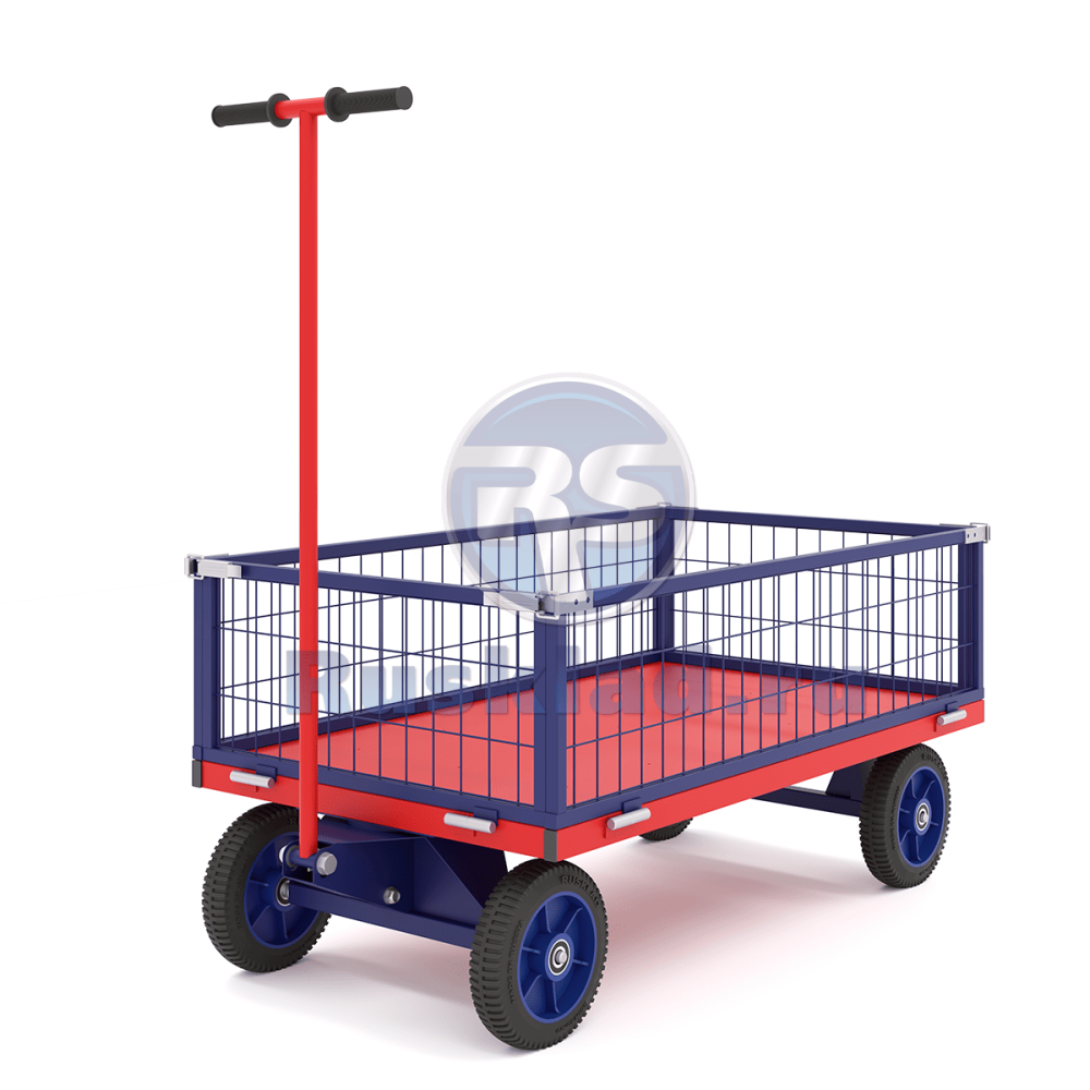 Тележка выполнена на базе ТПО, но имеет дополнения в виде сетчатых бортов.